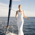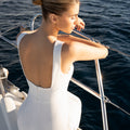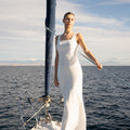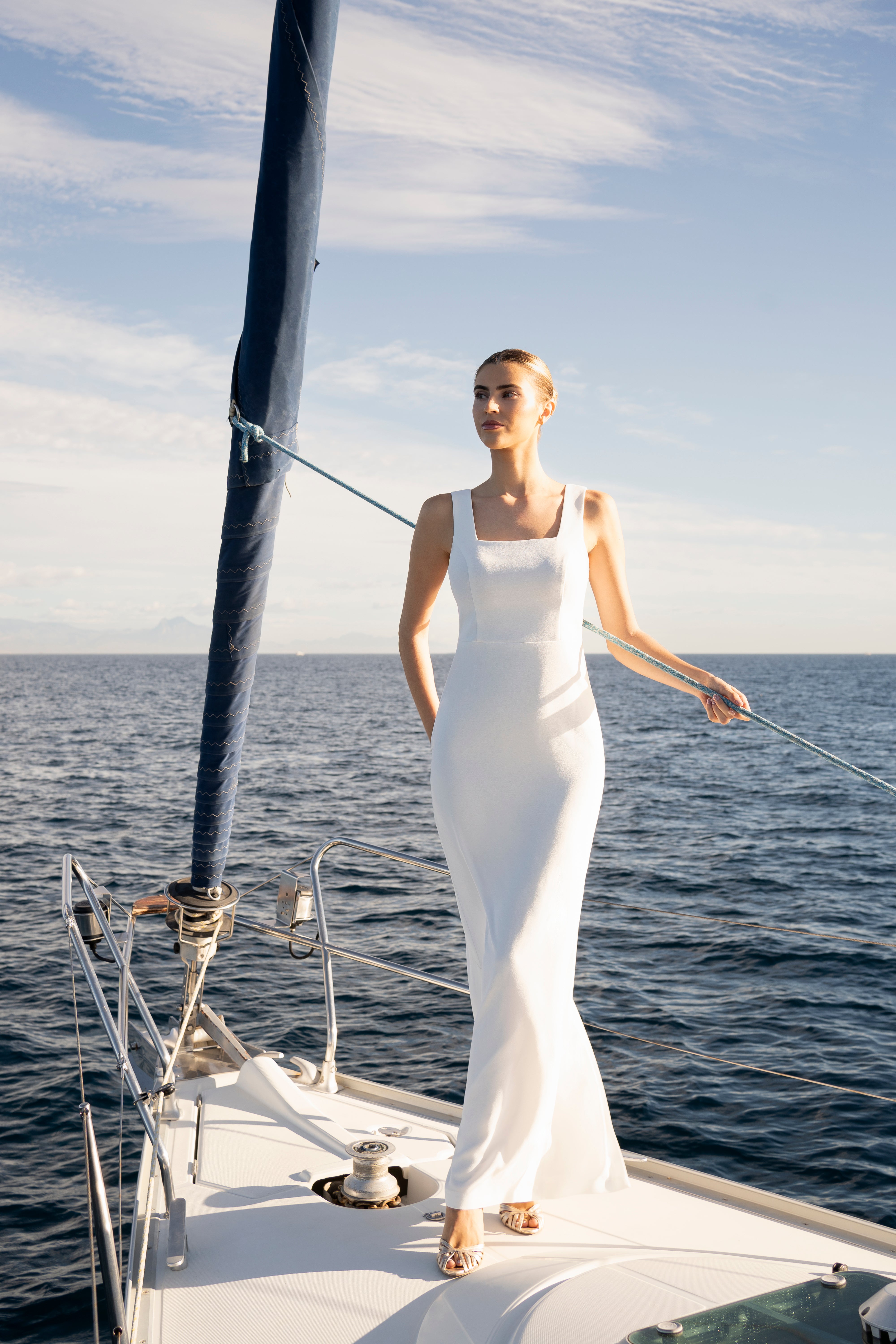Vestido de novia de líneas puras y elegancia atemporal.