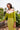 • Diseño en crepe verde lima con detalle de escote invisible y flores bordadas en tonos rosas.